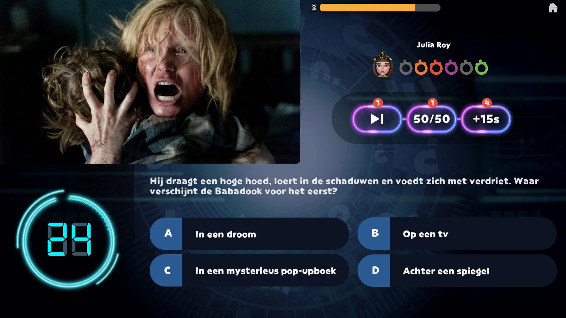 Hou je van enge films, spannende geluidseffecten en bloederige klassiekers? Van Freddy Krueger tot de slimme horror van Jordan Peele – deze griezelavondcategorie gaat over alles wat je 's nachts wakker houdt. Weet jij in welke film je muisstil moet blijven om te overleven? Of welke gemaskerde moordenaar vraagt wat jouw favoriete scary movie is? Eén foute vraag en je bent de volgende op de lijst.