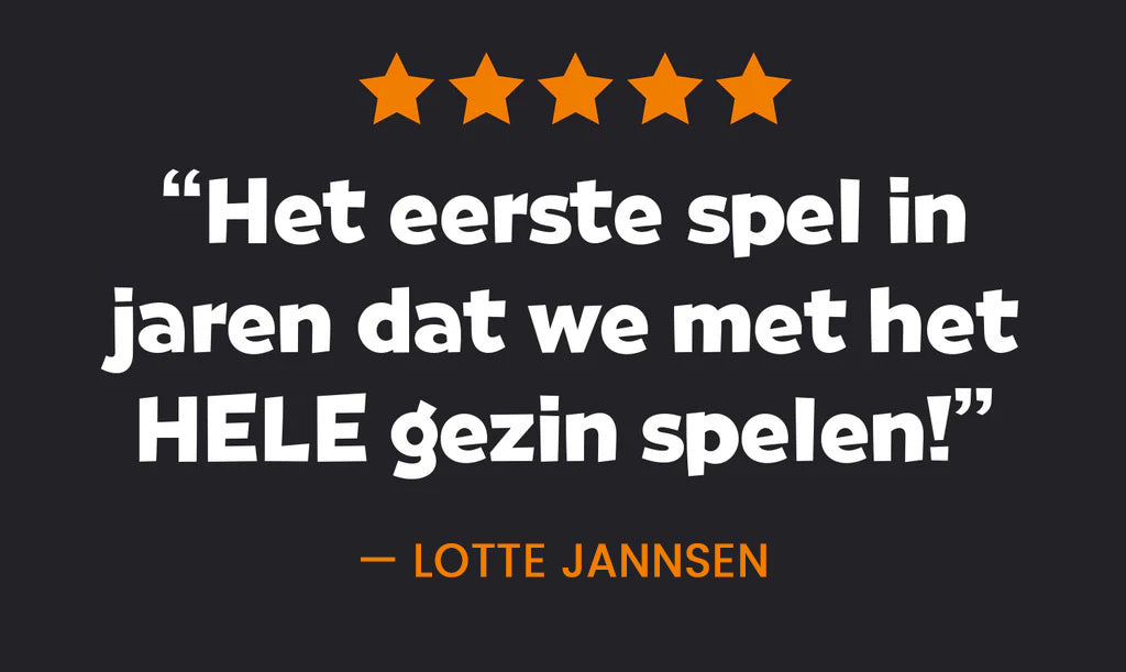 "Superleuk spel, écht een aanrader! We spelen het regelmatig met ons gezin en onze pubers spelen het ook graag met hun vrienden. Elke keer weer een feest. En ideaal dat je ook kunt kiezen voor een spel van een half uurtje, leuk om bijv. na het avondeten even samen te doen."